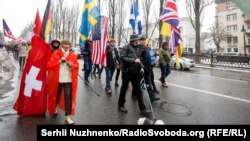 В центре Киева прошла акция в поддержку Украины, которая противостоит российской агрессии и находится под угрозой нового вторжения.