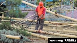 В Керчи на городской набережной демонтируют колесо обозрения. Как сообщает корреспондент Крым.Реалии, в среду, 16 октября, рабочие сняли подвесные кабинки и разрезают железные конструкции газовым резаком.