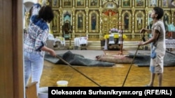 Это уже не первый случай, когда во время сильных ливней затапливает Кафедральный собор святых равноапостольных Владимира и Ольги Крымской. Такой случай произошел 23 июня после начала ремонтных работ на крыше храма, которые проводит российское Министерство имущественных и земельных отношений Крыма.