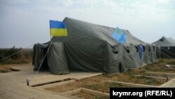 Комендант палаточного городка Дилявер Сейтумеров рассказал корреспонденту Крым.Реалии, что одна из палаток была оборудована как пресс-центр для журналистов, там же проводят заседания координационного штаба, есть раздельные палатки – для женщин и мужчин, а также палатка – для вновь прибывающих.