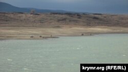 Тайганское водохранилище, расположенное в Белогорском районе Крыма, сильно обмелело. Как сообщает корреспондент Крым.Реалии, сейчас водоем больше напоминает ставок, чем некогда крупное водохранилище объемом 13,8 млн метров кубических воды.