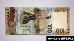 В банках Крыма стали выдавать купюры достоинством 100 рублей, выпущенные Банком России и посвященные Крыму и Севастополю, сообщает корреспондент Крым.Реалии.