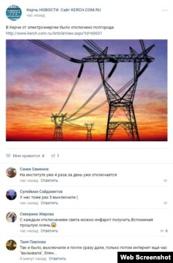 После блэкаута в аннексированном Крыму в конце минувшего года из соседней России начали прокладывать на полуостров энергомост, который после заявлений о введении его в эксплуатацию часто не выдерживал нагрузок. На полуострове часто происходят аварийные отключения света.