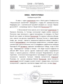 Эту просьбу они связали с заявлением Поклонской о мироточении бюста Николая II в Симферополе.