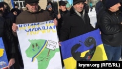 В Геническе Херсонской области 26 февраля проходит митинг, приуроченный ко «Дню сопротивления Крыма российской оккупации», сообщает корреспондент Крым.Реалии.