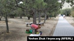 В парке женщина раскладывает груши и другие фрукты из домашнего сада. Интересуюсь ценой и понимаю, что в Севастополе гораздо дешевле. В южнобережных поселках все дорого – наценки от 50 до 100 процентов.