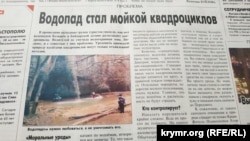 «Крымская правда» в статье «Водопад стал мойкой квадроциклов» сообщает о том, как под водопадом Козырек в Байдарской долине разъезжают квадроциклы. «Водителей не смутила водоохранная зона. Видимо, и с совестью у них проблемы. Уродовать крымскую природу колесами квадроциклов могут только отъявленные негодяи», ‒ пишет издание.