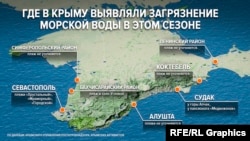 В Крыму в разгар курортного сезона профильные службы все чаще фиксируют в морской воде превышение норм загрязняющих веществ. Только за последний месяц в Роспотребнадзоре вынесли около двух десятков постановлений о временном ограничении купания у берегов полуострова. Крым.Реалии собрали информацию об этих опасных местах.