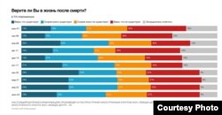 Аналитический центр Юрия Левады исследовал отношение россиян к смерти, а также к существованию загробной жизни и посмертного наказания. В условиях войны, которую ведет Россия в Украине, эта тема звучит особенно актуально, пишет Радио Свобода.