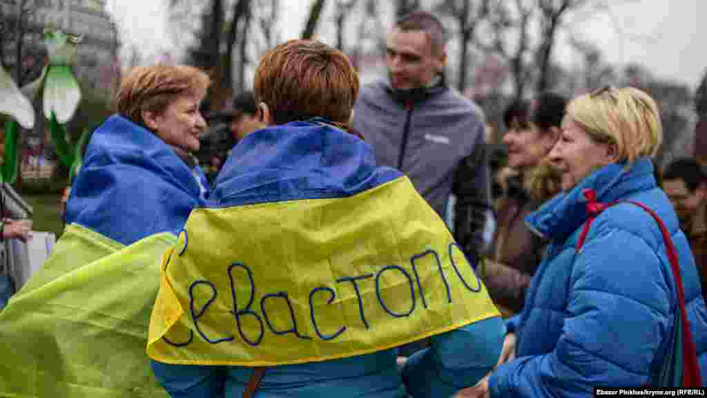 В Киеве возле памятника Тарасу Шевченко прошла акция солидарности в борьбе против аннексии Крыма. Дата выбрана неслучайно: 206 лет назад 9 марта родился украинский поэт, писатель и художник Тарас Шевченко, а в 2014 году 9 марта стало одним из главных дней борьбы против российской оккупации в Крыму.