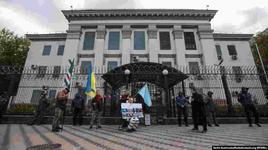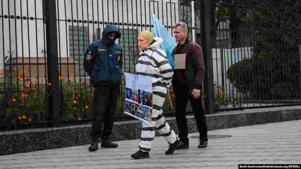 Во время акции бывшие политзаключенные – украинцы и крымские татары, которые побывали в заключении в России и аннексированном Крыму – дали показания в импровизированном «Гаагском суде». Таким образом активисты решили «поздравить» с днем рождения президента России.