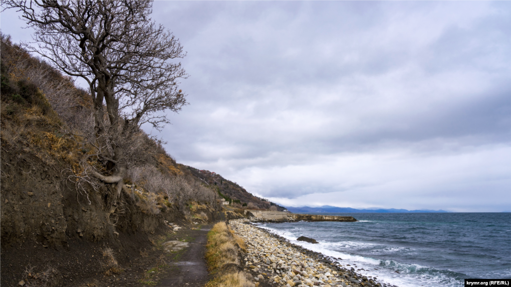 Один из таких пляжей, причем в зоне Южного берега Крыма, тянется под горой Кастель между маленьким поселком Большой Алушты Чайка и селом Лазурное.