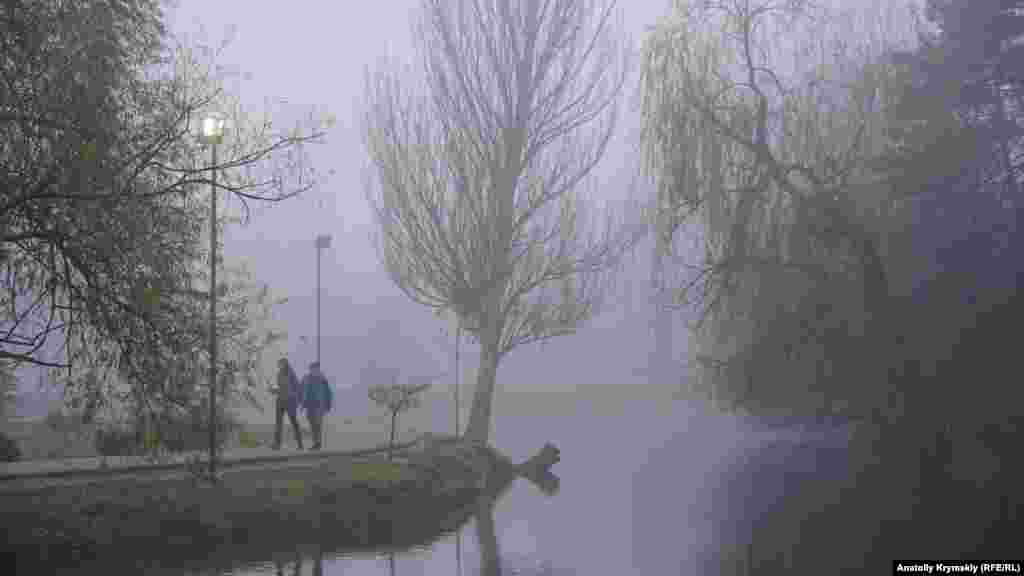 Вчерашний вечер в крымской столице начался с мелкого дождя, продолжающегося целую ночь. Утром город заволокло туманом, который не рассевался целый день.