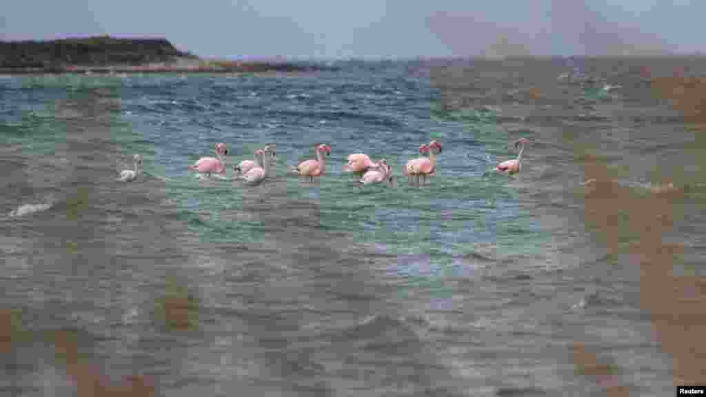 На побережье Черного моря у села Межводное, что в Черноморском районе Крыма, была замечена стая розовых фламинго.