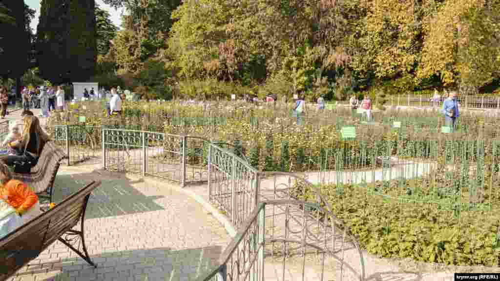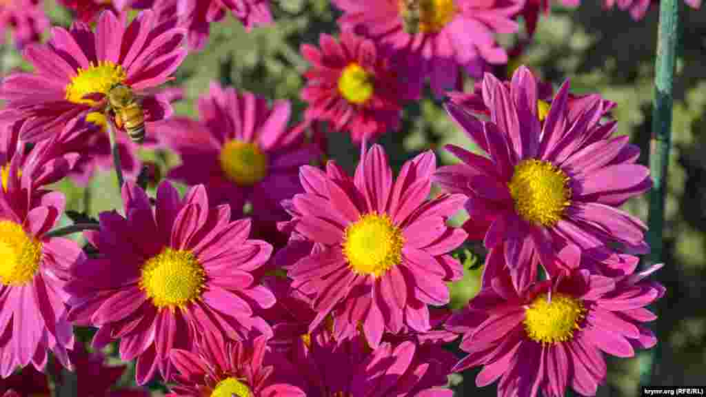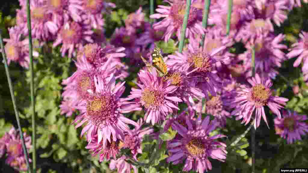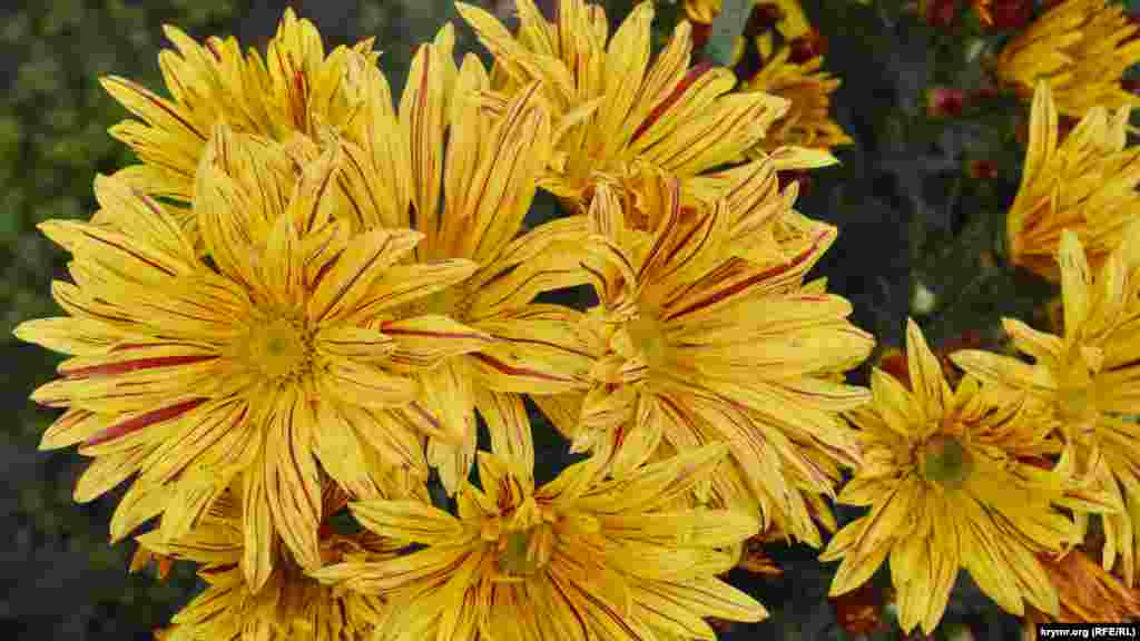 В этом году бал хризантем в Никитском ботсаду открылся в 66-ой раз и получил название «Золотой цветок». На основной площадке в центре высадили крупноцветковые хризантемы, но из-за жаркой погоды октября они еще не успели распуститься. Зато мелкоцветоковые сорта уже вовсю радуют глаз гостей бала. Корреспондент Крым.Реалии запечатлел на фото главных «виновниц торжества» и посетителей, которые пришли насладиться их красотой.
