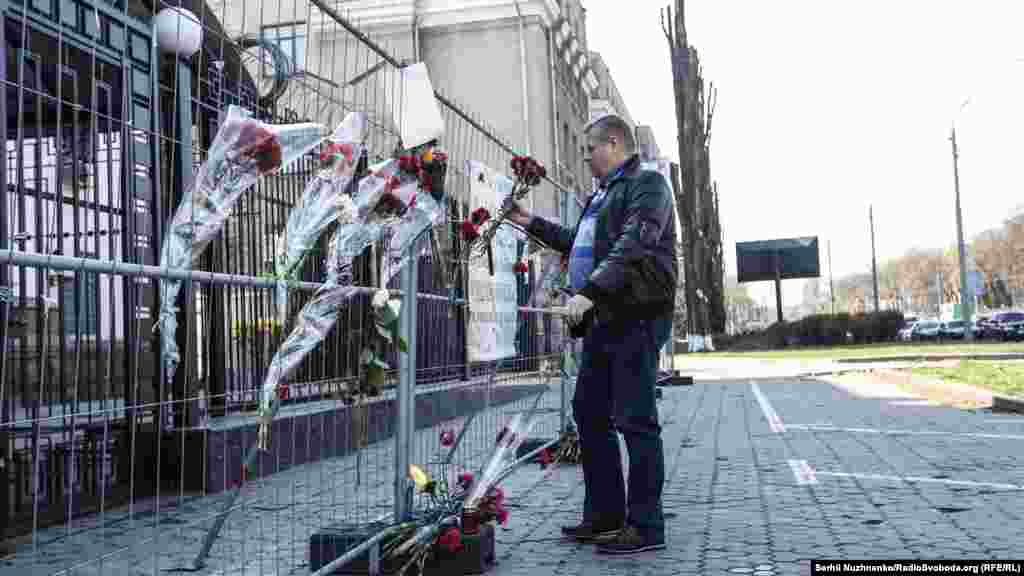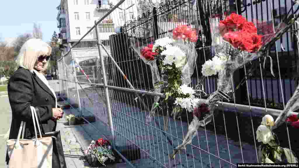 Киевляне несут цветы к посольству России в память о погибших в Санкт-Петербурге (фотогалерея)
