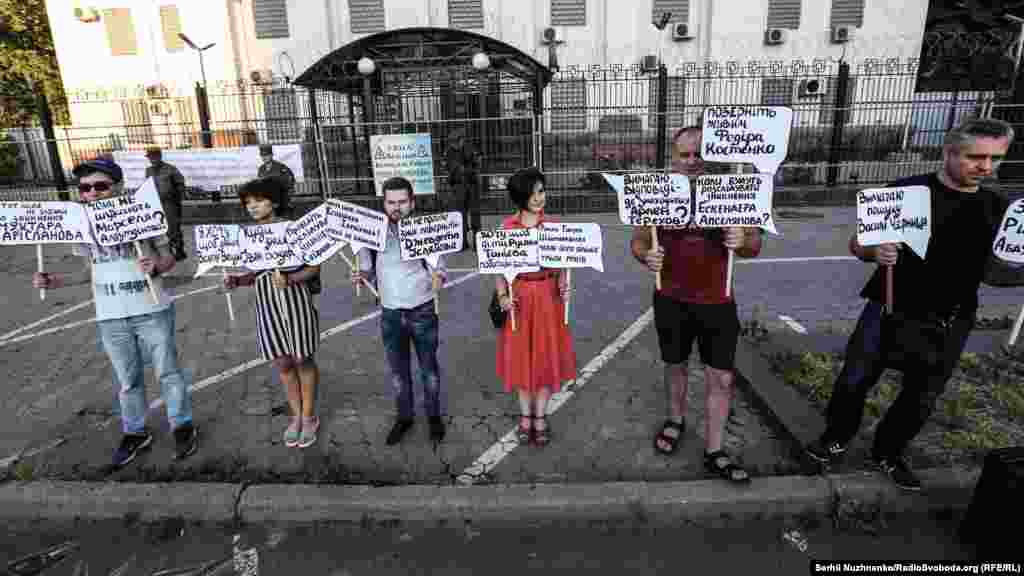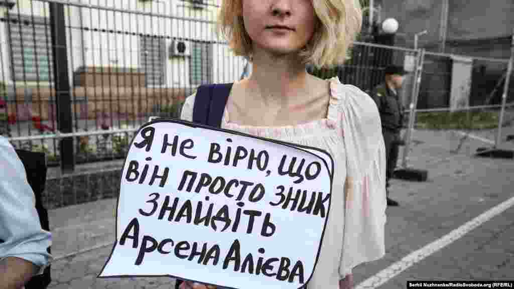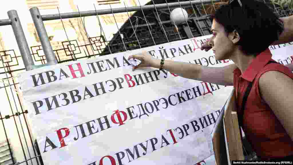 Возле посольства России в Киеве вечером 27 июня активисты из общественной инициативы «КрымSOS» провели акцию в поддержку пропавших без вести крымчан «Где Эрвин?».