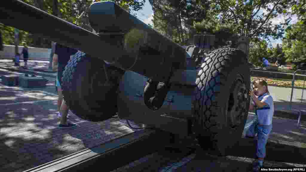Моряки делают фото на память перед возложением цветов у памятника Защитникам Севастополя в годы Второй мировой войны