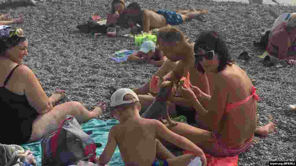 На Западном берегу Крыма недалеко от города Саки расположился поселок Новофедоровка. Люди приезжают сюда за свежим морским воздухом и теплым песком. Новофедоровка же встречает обилием «пляжных» торговцев. Из развлечений – фото с измученным на солнце животным. Корреспондент Крым.Реалии отправился в Новофедоровку, чтобы запечатлеть, чем живет туристический поселок.