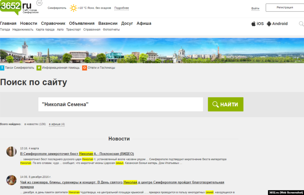 Ведущие крымские СМИ, вообще никогда не упоминавшие Николая Семену