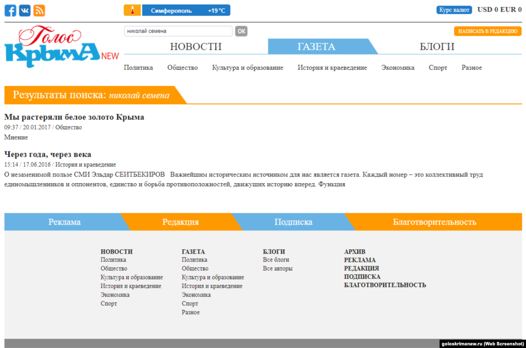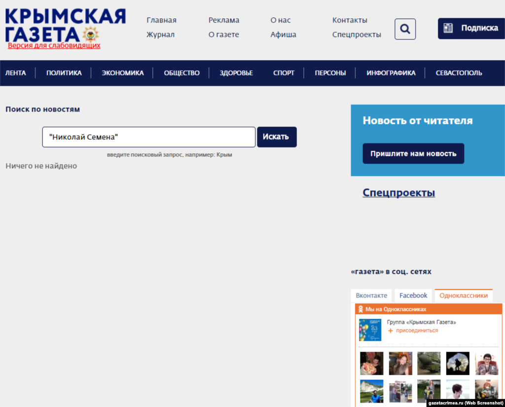 Ведущие крымские СМИ, никогда не упоминавшие крымского журналиста Семену (фотогалерея)
