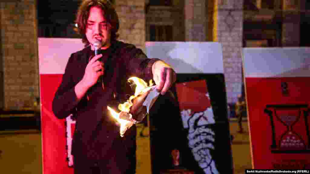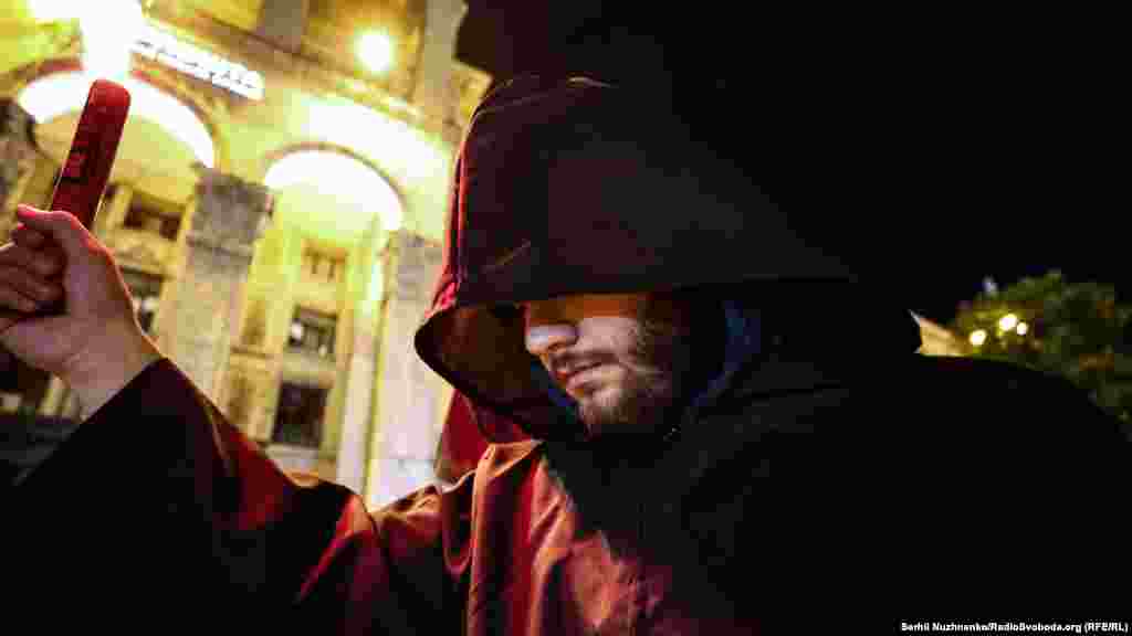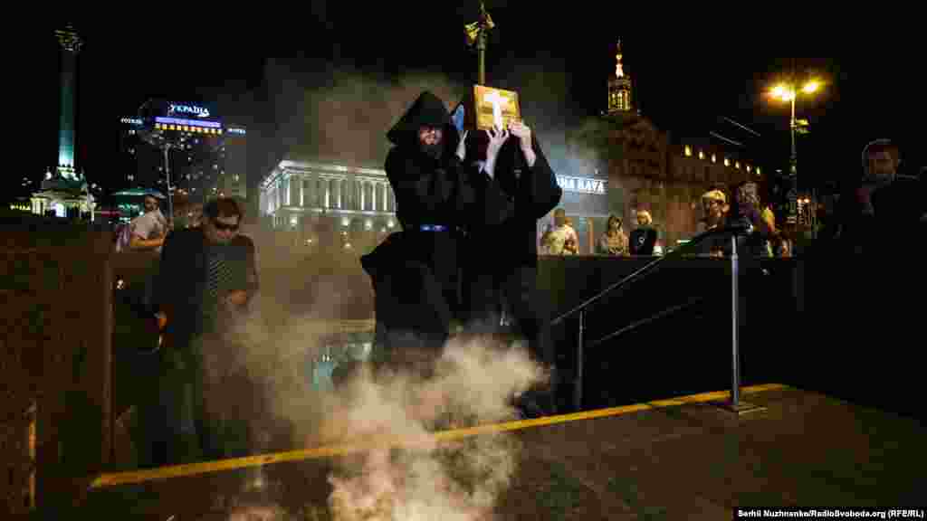 Гроб и «мистический обряд»: активисты в Киеве вышли против путинского режима (фотогалерея)
