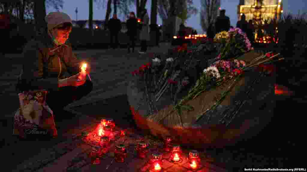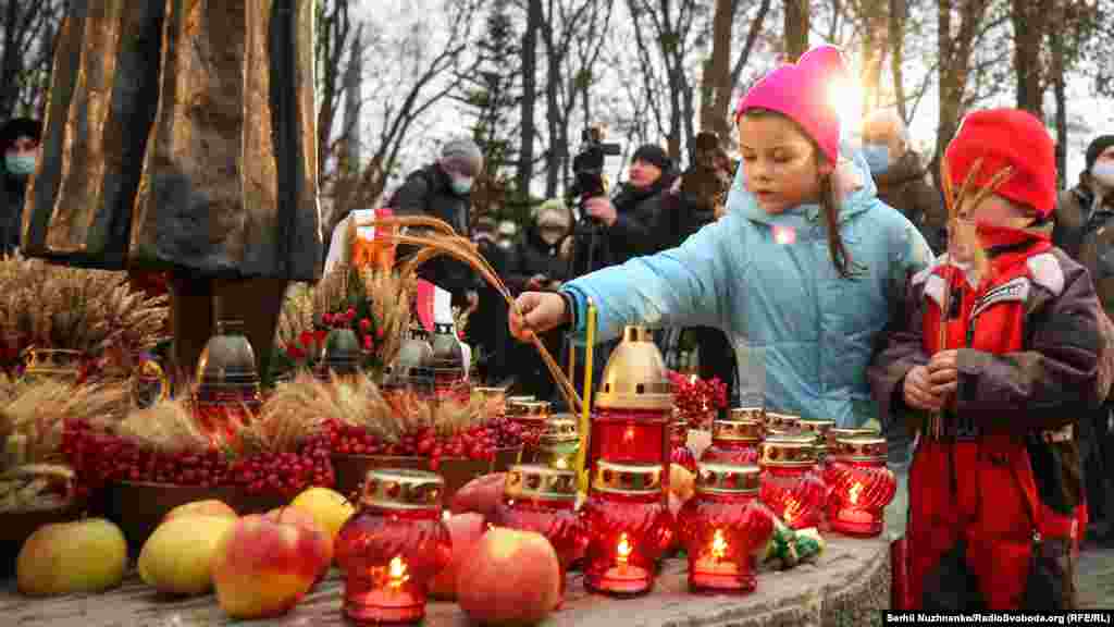В Киеве возле «Мемориала жертвам Голодомора» собрались сотни людей, чтобы почтить память погибших от голода.