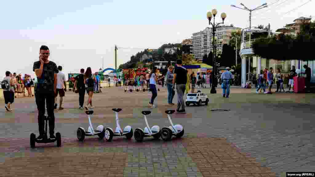 Алушта готовится к началу курортного сезона. Уже начали работу прибрежные кафе, становится больше лавок с сувенирами.