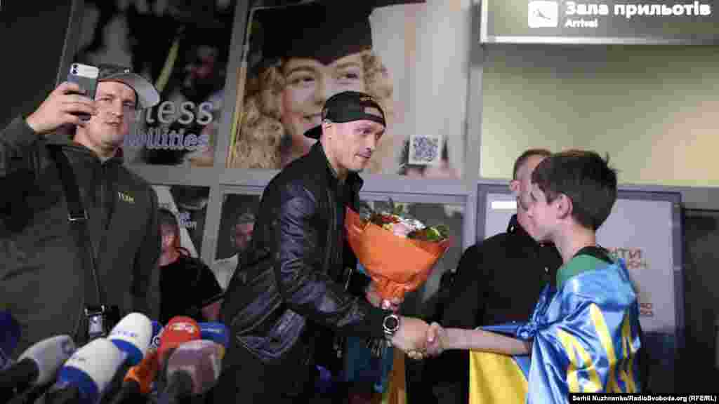 Боксер Александр Усик в ночь на 23 июля вернулся в Киев из Москвы, где он накануне завоевал титул абсолютного чемпиона мира по боксу в весовой категории до 90,7 килограмма.