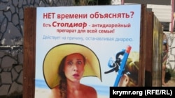 Порадовал креативный подход арендаторов пляжей. Это – раздевалка на первом городском. Раньше на раздевалках рекламировали кафе, магазины сувениров и прочее, но в этом сезоне главный тренд – реклама лекарства от поноса.