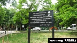 Наткнулся на результат очередной акции у Дома офицеров флота. Там этой весной казаки высадили деревья в честь аннексии Крыма. На табличку даже расщедрились.