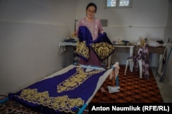 Мастерских и отдельных ремесленников в туристических городах и даже в Ташкенте много. Национальное, кажется, становится модным, и это очень напоминает процессы в Украине после 2014 года. На узбекский впервые переводятся исследования о движении басмачей. "Государство организовало программу, по которой мальчики и девочки, которые пойдут ко мне в ученики, будут получать стипендии", – рассказывает пожилая женщина, мастер, вышивающая национальные свадебные халаты. Раньше она работала на текстильной фабрике, которая закрылась после 1991-го. "А много учеников по программе пришло к вам?" – спрашиваю ее. "Никого, – отвечает и грустно улыбается. – Это трудно и кропотливо, один халат вышить – нужно месяца четыре".