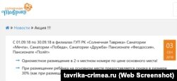 Однако на сайте «Солнечной Таврики» до конца сентября объявлены скидки на размещение с детьми. Среди здравниц, в которых действует акция, значатся две, в которых расселили детей из Армянска – это евпаторийские санатории «Дружба» и «Мечта». То есть на момент приезда постояльцев из северного Крыма они не могли быть закрыты после курортного сезона, поскольку до сих пор ожидают туристов.