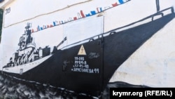 Трансформаторная подстанция украшена граффити, уличные художники нарисовали крейсер «Москва». Вид портит наименование ТП и адрес Севэнерго. Свободного места для надписи хватает, но энергетикам, похоже, на красоту наплевать. Технари, одним словом.