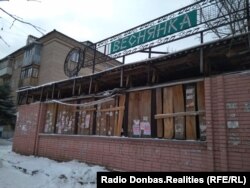 А в здании, где раньше были аптека и продукты, поврежденные двери и вовсе заложили кирпичом.