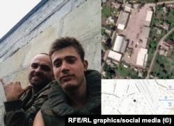 К югу от Изюма, западнее Каменки, Радио Свобода обнаружило еще одну возможную позицию российских военных. Она попала на фото, выложенное 27 августа 34-летним жителем Санкт-Петербурга Александром Табелевым (судя по аккаунтам его родных, это настоящее имя). У всех людей на этом снимке аккаунты закрыты, и только Табелев не только сделал доступным для всех желающих свой профиль, но и не выключил геолокацию на телефоне, когда попросил кого-то из сослуживцев сделать красивый кадр (на нем он – второй слева).