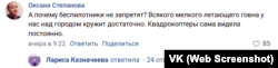 «А почему беспилотники вообще не запретят?» – задается вопросом Оксана Степанова в группе «Подслушано в Севастополе» соцсети «Вконтакте».