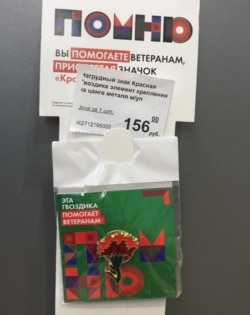 Как оказалось, это далеко не единственная форма получения прибылей на популярной в России теме. На протяжении последнего месяца в прикассовой зоне крымских супермаркетов часто можно увидеть упаковку с надписью: «Помню». Покупателям поясняют, что в случае приобретения значка с изображением красной гвоздики они помогают ветеранам.