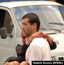 Больница – единственное, наверное, место во всем этом хаосе, где царил порядок. Вход охраняют автоматчики, но через него никто и не пытается прорваться в палаты, собравшиеся возле больницы люди в шоке и истерике, но из последних сил все же держат себя в руках. Вышедшие на свежий воздух покурить-подышать медики говорят, что сейчас у них больше 200 человек: "Раны в основном минно-взрывные, осколочные, есть пулевые, ожоговые, практически все в шоке. Еще примерно 400 увезли в больницы Владикавказа".