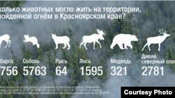 На пройденных огнем территориях, по подсчетам экспертов Greenpeace, жили более 5500 соболей и 300 медведей, а также около 2700 диких северных оленей и 1500 лосей.