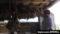 Александра Чуракова плетет луковую косу на продажу, ее семья 70 лет выращивает ялтинский лук в селе Запрудное. Родственники расстроены тем, что в селе все больше ценных участков приходят в запустение или вовсе застраиваются.