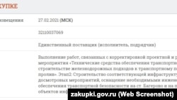 По информации российского портала госзакупок, в марте Управлением ведомственной охраны Министерства транспорта России были закуплены работы по корректировке проектной и рабочей документации в рамках обеспечения транспортной безопасности при строительстве железнодорожных подходов к переходу через Керченский пролив.