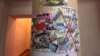 На рекламной доске объявлений цвета флага Украины написаны списки изданий террористической республики и государства-оккупанта