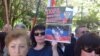 Акция прошла на фоне плакатов «Крым скорбит», «Позор киевским властям, ученившим генацид на Юго-Востоке» (правописание сохранено)